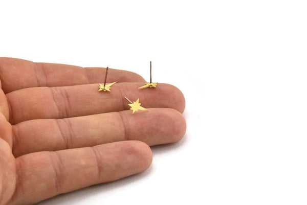 Pirinç Kuzey Yıldızı Küpe, 12 Ham Pirinç Kutup Yıldızı Şeklinde Küpe (11x7x0,60 mm) A4175