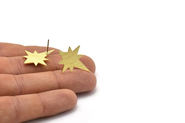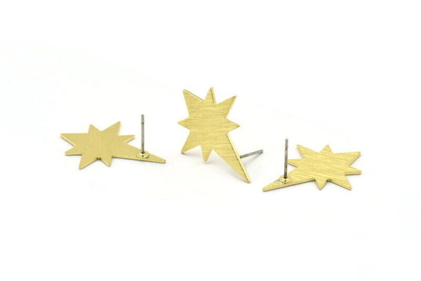 Pirinç Kuzey Yıldızı Küpe, 4 Dokulu Ham Pirinç Kutup Yıldızı Şekilli Küpe (27x22x0,80 mm) M02546 A0510