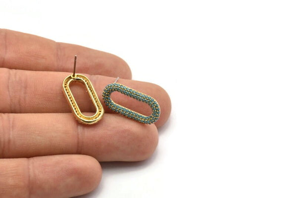 Pirinç Oval Küpe, 2 Ham Pirinç Oval Şekilli Zirkonyum Küpe (23x12mm) SY0263