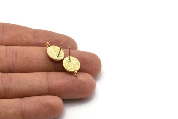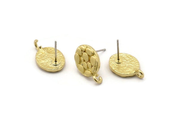 Pirinç Oval Küpe, 1 Halkalı 4 Ham Pirinç Oval Şekilli Çivi Küpe (16x10x2mm) N1866