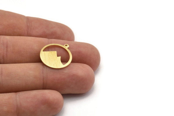 Pirinç Yuvarlak Charm, 1 Döngülü 12 Dokulu Ham Pirinç Dağ Şeklinde Yuvarlak Charm, Kolye Uçları, Küpe Aksesuarları (20x18x0,80 mm) M02811