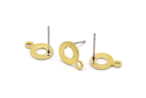 Pirinç Yuvarlak Küpe, 1 Döngülü 12 Dokulu Ham Pirinç Daire Küpe (11x8x0,80 mm) M360 A2342