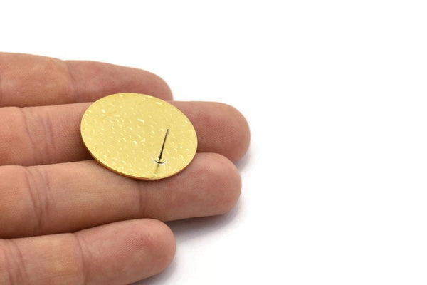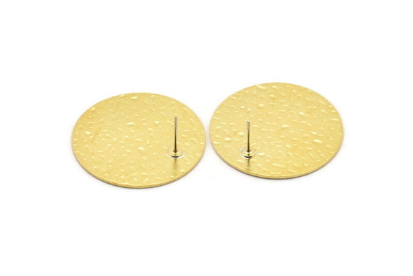 Çekiçle İşlenmiş Ham Pirinç Yuvarlak Küpe