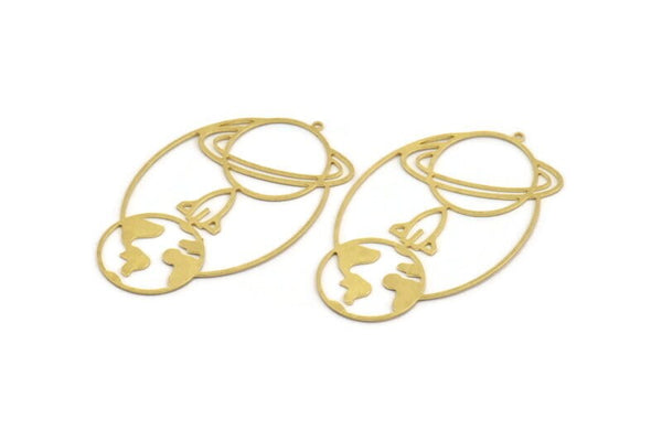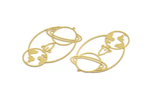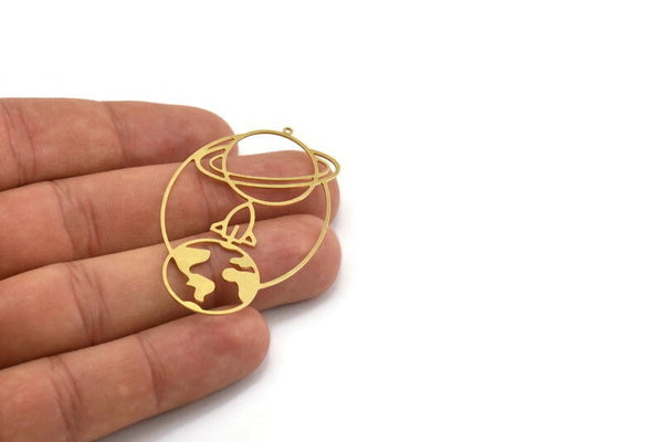 Pirinç Satürn Tılsımı, 1 Halkalı 6 Ham Pirinç Satürn ve Dünya Şekilli Tılsım, Kolye Uçları, Gezegen Bulguları, Roket Tılsımları (54x33x0,60 mm) A5159