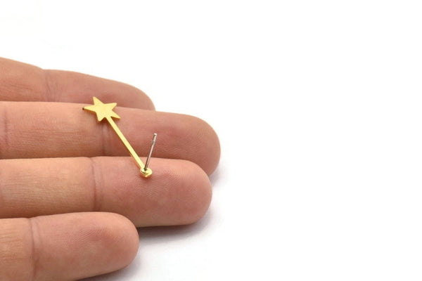 Pirinç Yıldız Küpe, 10 Ham Pirinç Yıldız Küpe (30x9x0,80 mm) M02053 A2505