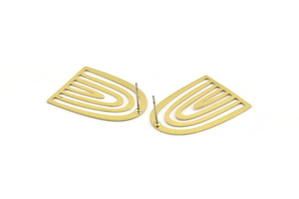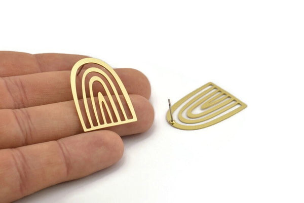 Pirinç Çivi Küpe, 6 Ham Pirinç D Şeklinde Çivi Küpe (30x23x0,60 mm) A3376