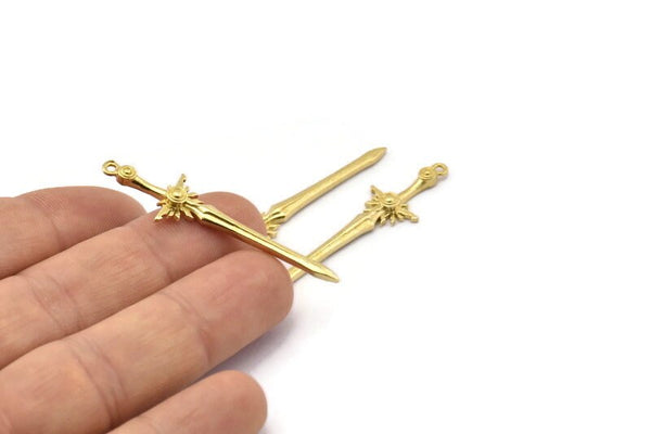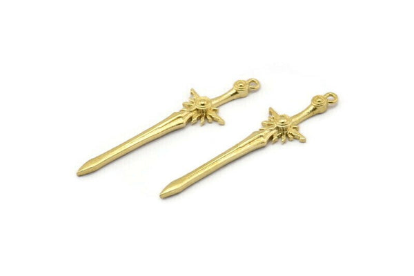 Pirinç Kılıç Tılsımı, 1 Halkalı 4 Ham Pirinç Kılıç Tılsımı, Küpeler, Tılsımlar, Kolye Uçları, Bulgular (46x12mm) N1625