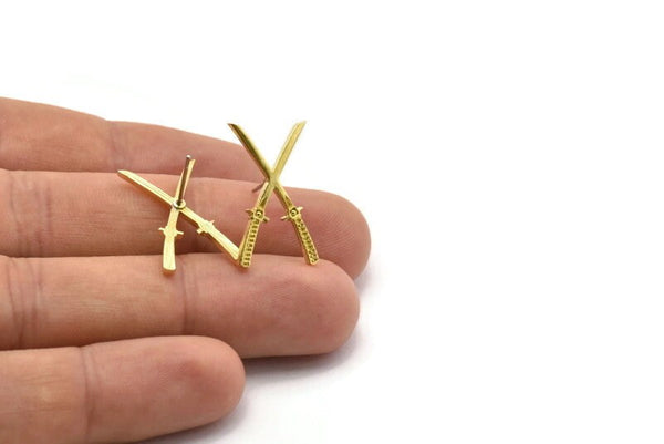 Pirinç Kılıç Küpe, 6 Ham Pirinç Katana Kılıcı Şekilli Küpe, Samuray Kılıcı Küpe, Japon Kılıcı Küpe (23x14 mm) N1754