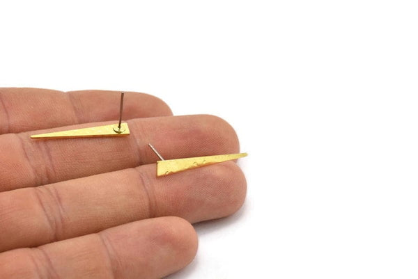 Pirinç Üçgen Küpe, 12 Çekiçlenmiş Ham Pirinç Küçük Üçgen Küpe (26x4,5x0,80 mm) M390 A2351