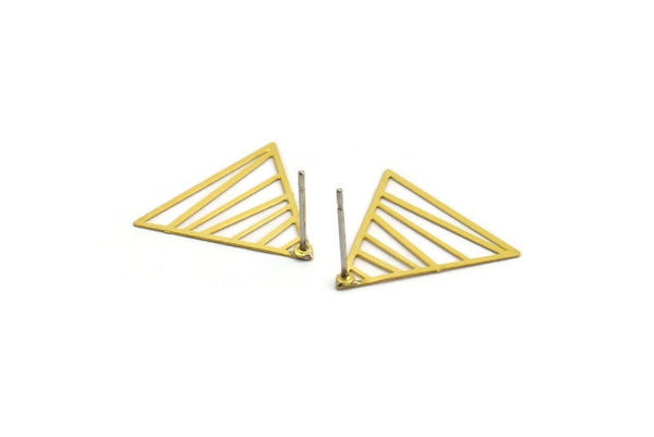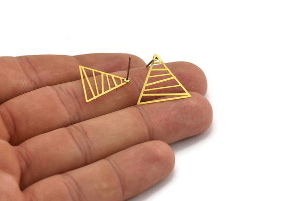 Pirinç Üçgen Küpe, 8 Ham Pirinç Üçgen Küpe, Küpe Parçaları (20 mm) E024 A5454