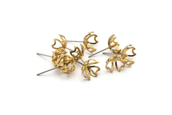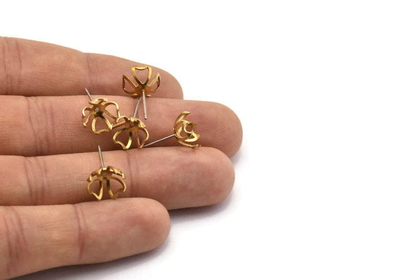 8 mm Boncuk İçin 10 mm Düz Pedli Ham Pirinç Paslanmaz Çelik Küpe Uçları