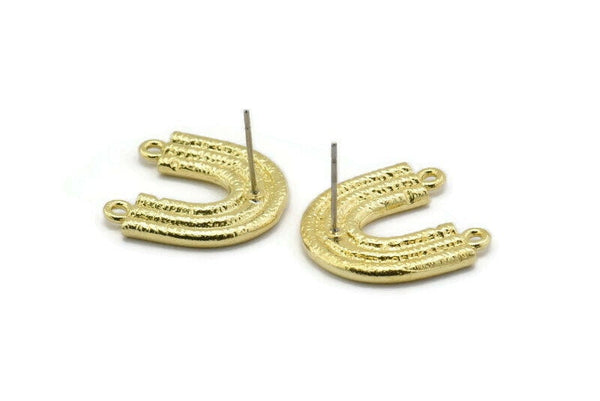 Küpe Çivisi, 2 Ham Pirinç - 2 Halkalı U Şeklinde Küpeler - Pirinç Küpeler - Küpeler (20x19mm) N1970