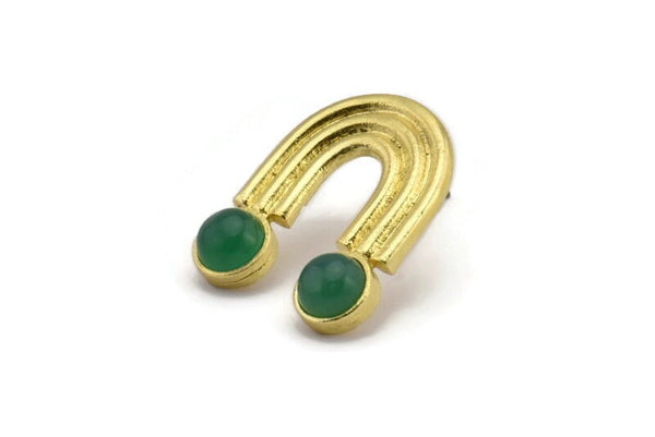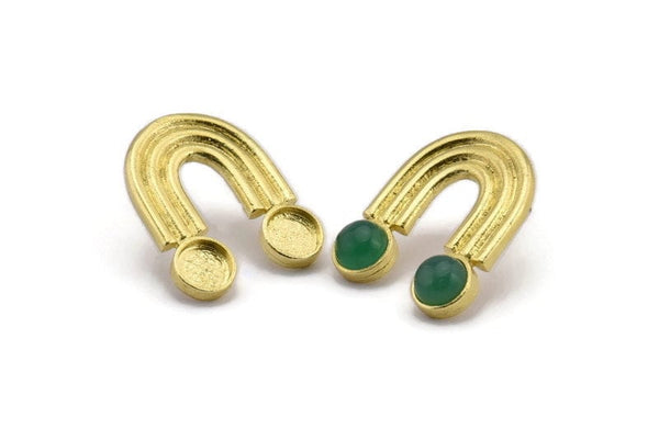Küpe Çivisi, 2 Ham Pirinç - 2 Pedli U Şeklinde Küpeler - Pirinç Küpeler - Küpeler - 6 mm Taşlar İçin (24x19 mm) N2053