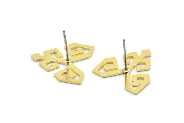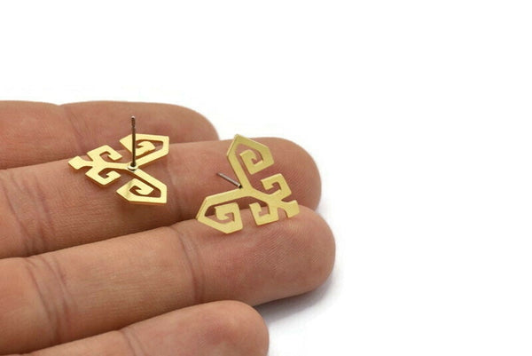 Küpe Çivisi, 8 Ham Pirinç - Etnik Motif Şekilli Çivili Küpe - Pirinç Küpeler - Küpeler (18x17x0,80 mm) A2706