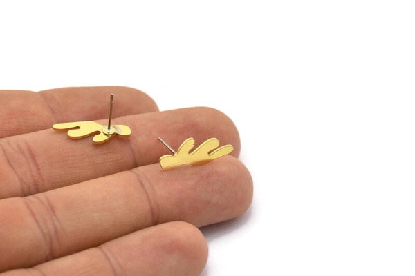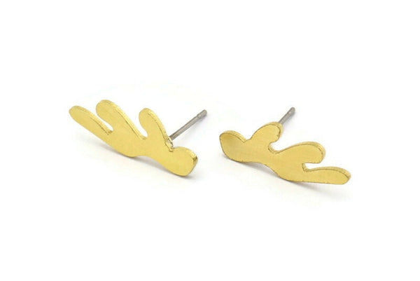 Küpe Çivisi, 8 Ham Pirinç - Düzensiz Şekilli Çivili Küpeler - Pirinç Küpeler - Kaktüs Küpeler (19x7x0,80 mm) A2677