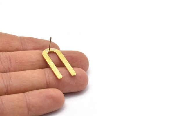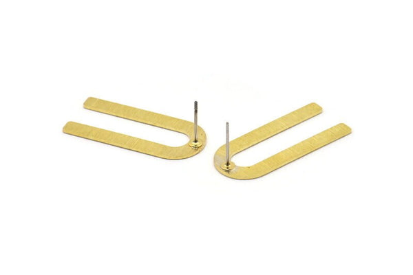 U Şeklinde Küpe, 8 Dokulu Ham Pirinç U Şeklinde Çivi Küpe (30x13x0,80 mm) M167 A1592