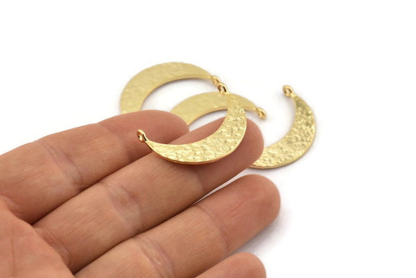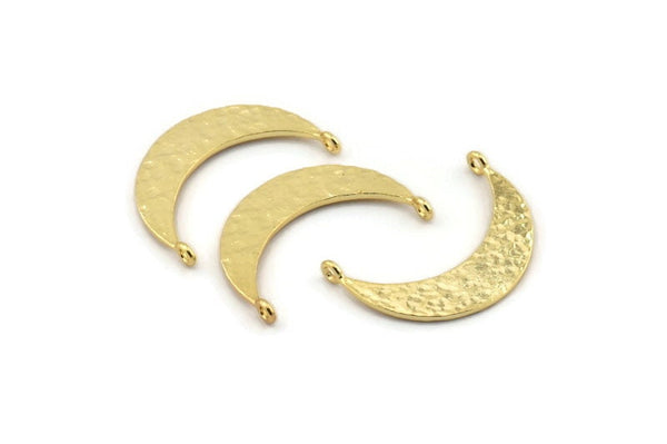 2 Halkalı Çekiçle Dövülmüş Altın Kaplama Pirinç Hilal Ay Takıları