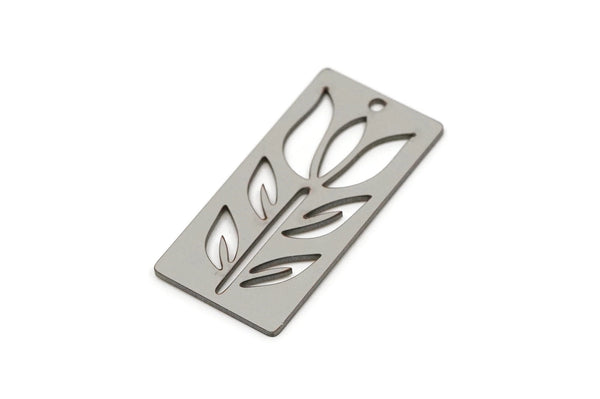Stainless Steel Branch Patterned Rectangle Shaped Charms With 1 Hole